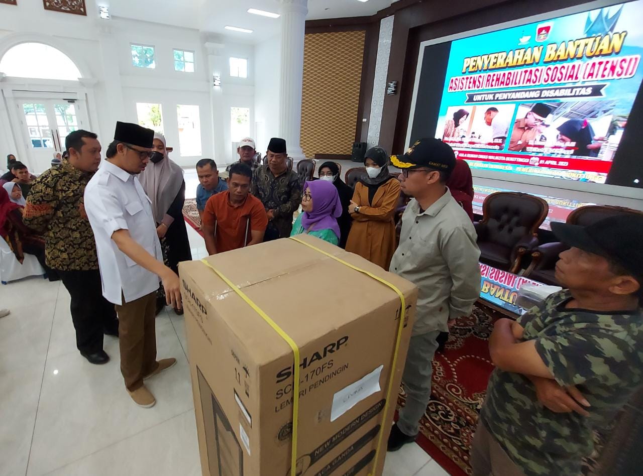 Pemerintah Kota Bukittinggi melalui Dinas Sosial, salurkan bantuan Asistensi Rehabiltasi Sosial (ATENSI) untuk penyandang disabilitas. Bantuan diserahkan secara simbolis di Balairung rumah dinas wako, Sabtu (01/04).