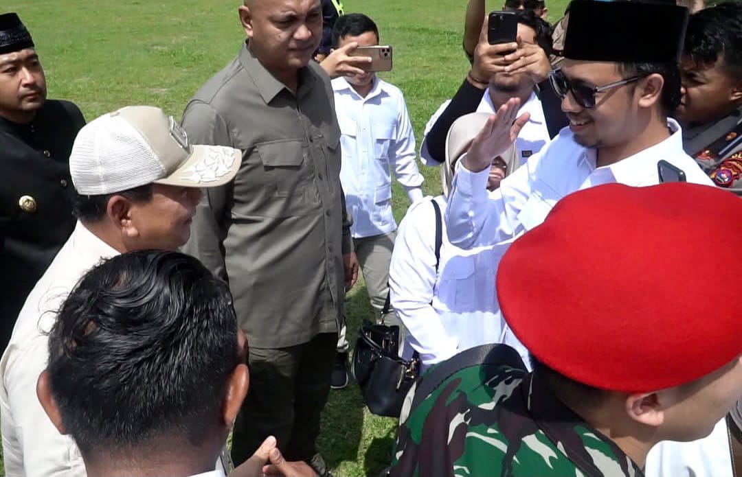 Wali Kota Bukittinggi sambut Menteri Pertahanan (Menhan), Prabowo Subianto yang tengah melaksanakan kunjungan kerja ke Kota Batusangkar. Kehadiran Prabowo Subianto ini, juga disambut ratusan warga kota yang langsung Hadir di Istana Pagaruyuang Batusangkar. sabtu, 29 April 2023.