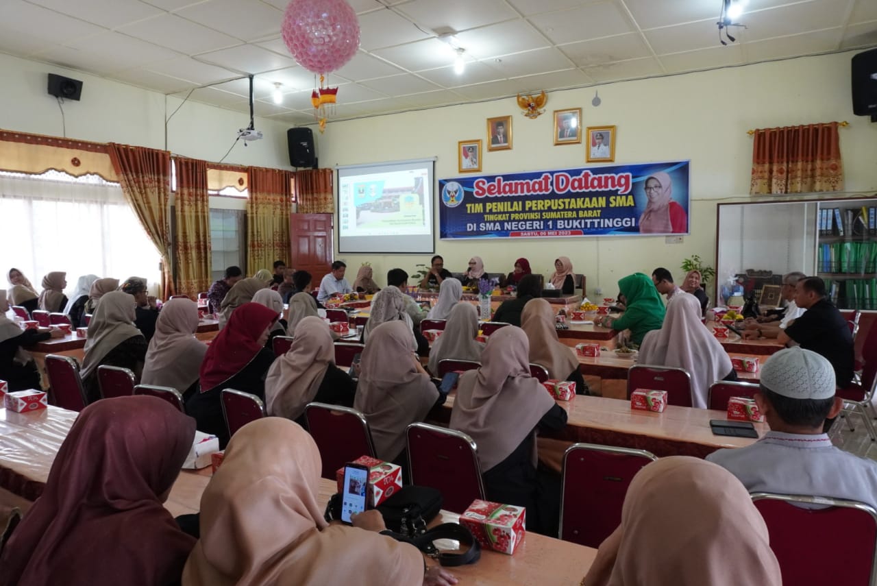 Bukittinggi – Perpustakaan SMAN 1 Bukittinggi untuk keempat kalinya mengikuti penilaian pustaka tingkat Provinsi Sumatra Barat. Tahun 2023 ini, Perpustakaan Sunaryaman Mustafa, dinilai tim visitasi, di SMAN 1 Bukittinggi, Sabtu, 6 Mei 2023.