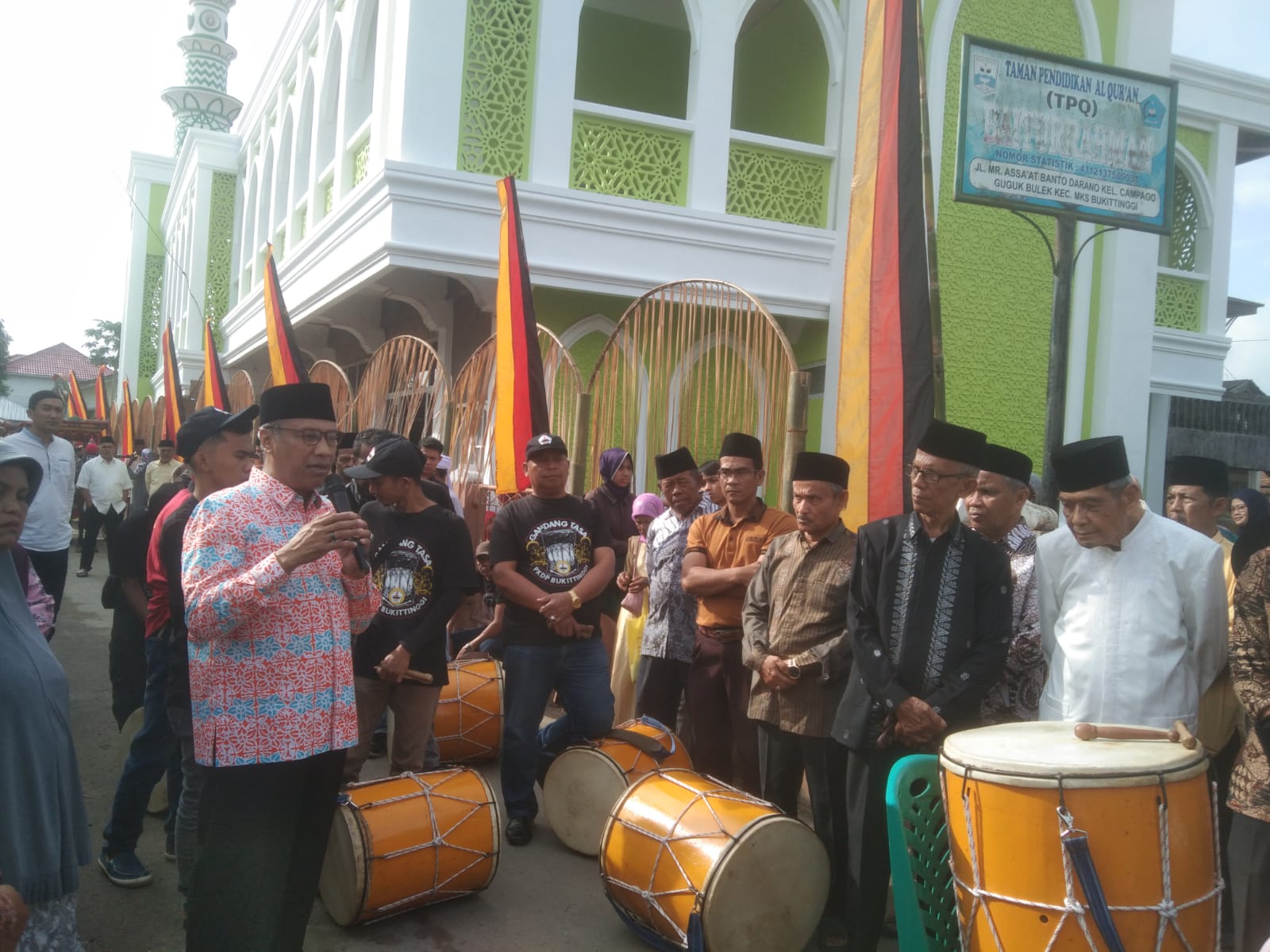 Marfendi hadir dalam kegiatan Alek Nagari pawai Khatam Al Quran ke-27 di Masjid Baiturrahman, kampung Bantodarano, Kelurahan Campago Guguk Bulek yang berlangsung meriah.