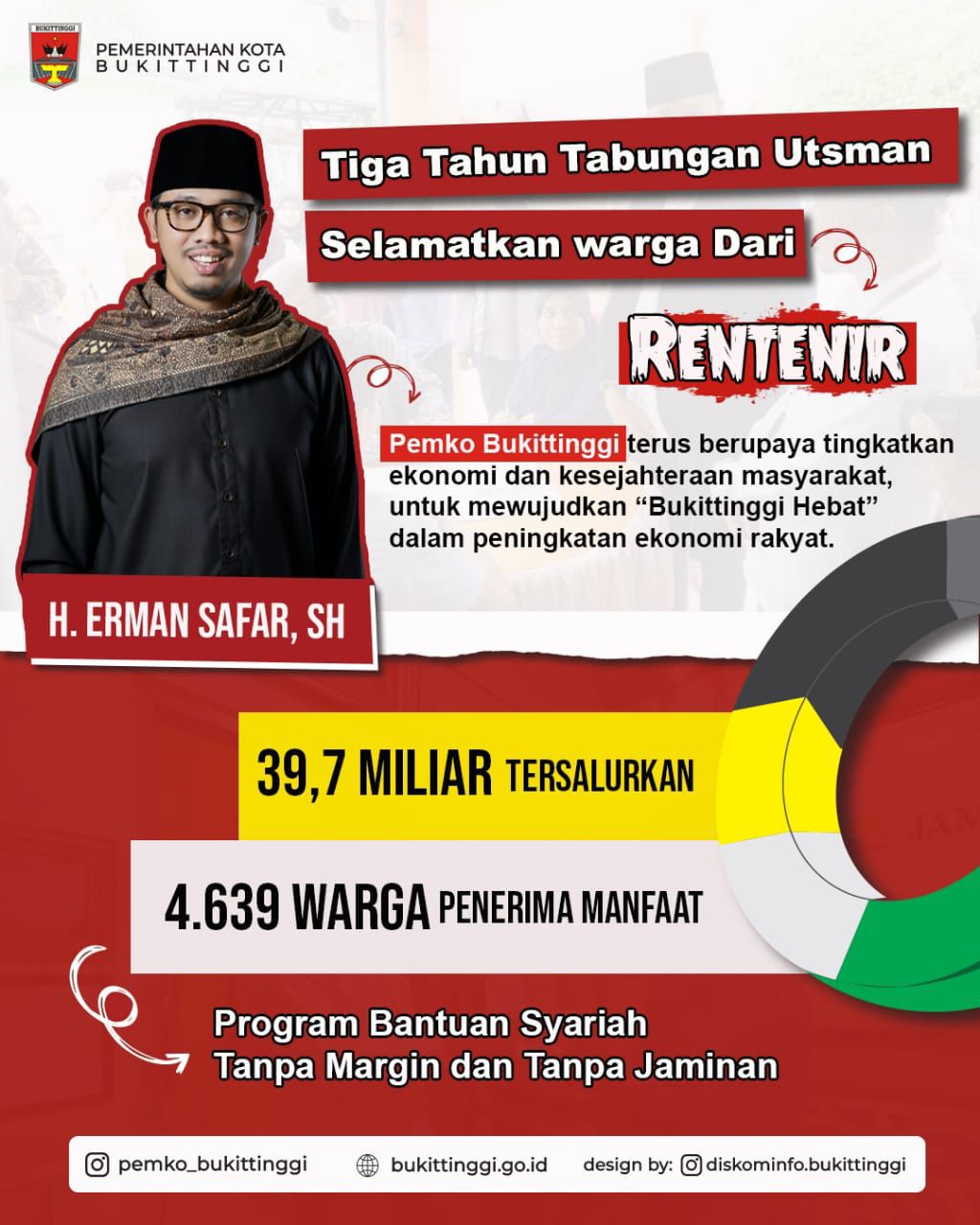 Program Tabungan Utsman merupakan program unggulan Pemerintah Kota Bukittinggi yang diinisiasi oleh Wali Kota Bukittinggi, Erman Safar. Program kolaborasi Pemko Bukittinggi dengan Bank Pembiayaan Rakyat Syariah (BPRS) Jam Gadang, memberikan kemudahan pinjaman modal tanpa agunan dan menjadi penggerak perkembangan UMKM di Kota Bukittinggi. Sementara, untuk margin yang timbul, dibayarkan oleh pemerintah melalui APBD setiap tahunnya dan selama 3 tahun berjalan telah memberikan subsidi hingga Rp6,8 milyar lebih.