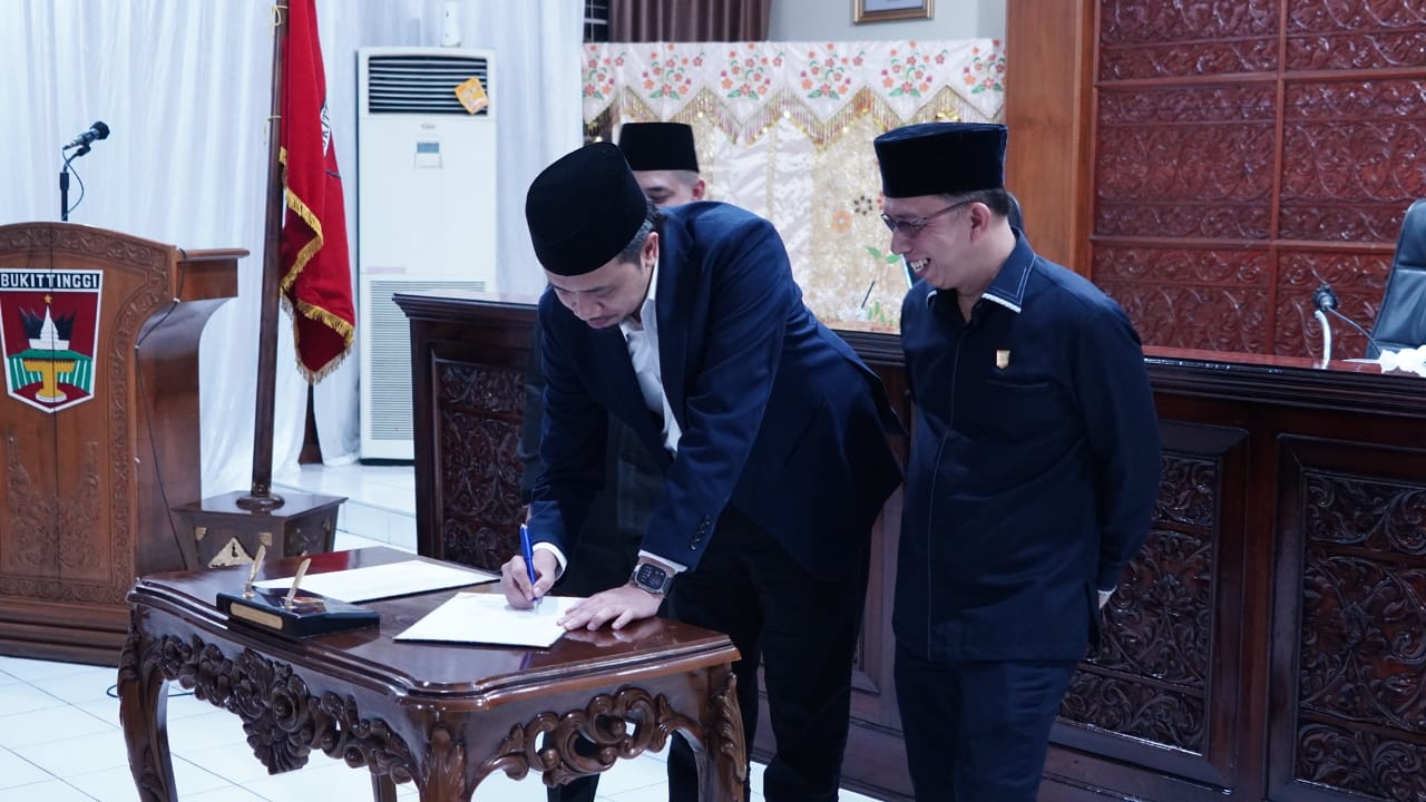RAGAM – DPRD bersama Pemerintah Kota Bukittinggi akhirnya sepakati perubahan APBD 2024. Nota persetujuan APBD Perubahan 2024 itu, ditandatangani kedua belah pihak, dalam rapat paripurna di Gedung DPRD, Senin, 5 Agustus 2024.