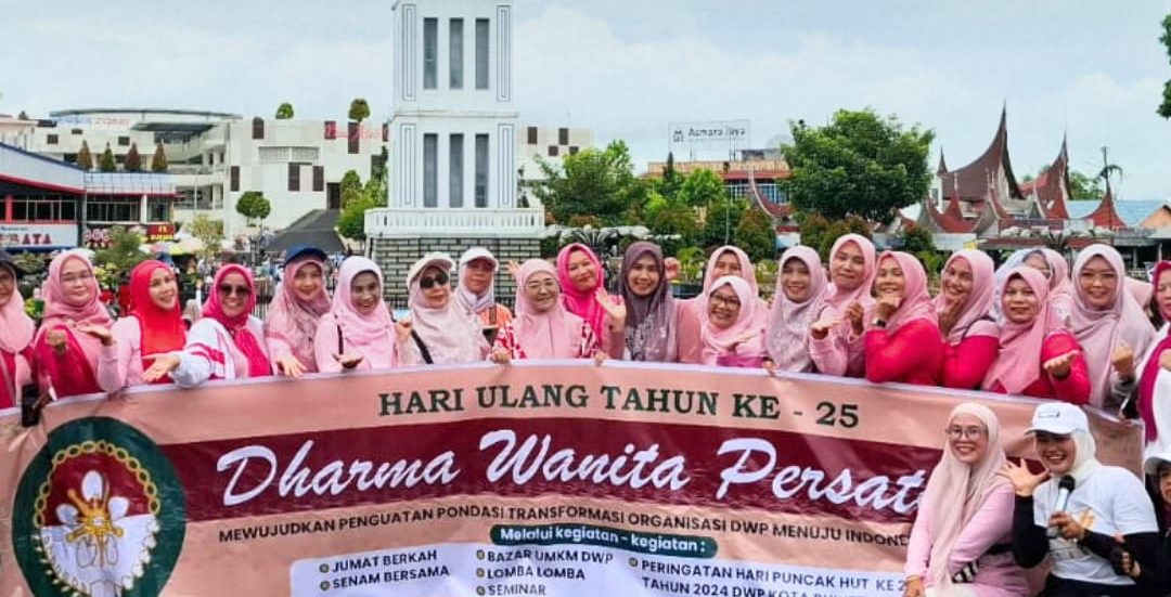 RAGAM – Dalam rangka memperingati Hari Ulang Tahun ke-25, Dharma Wanita Persatuan (DWP) Kota Bukittinggi gelar senam sehat bersama Pjs Penasehat DWP Ny. Hj Merry Hani Rustam dan seluruh pengurus DWP lingkungan Pemerintah Kota Bukittinggi. Kegiatan ini berlangsung di Pedestarian Jam Gadang. Sabtu, 2 November 2024.
