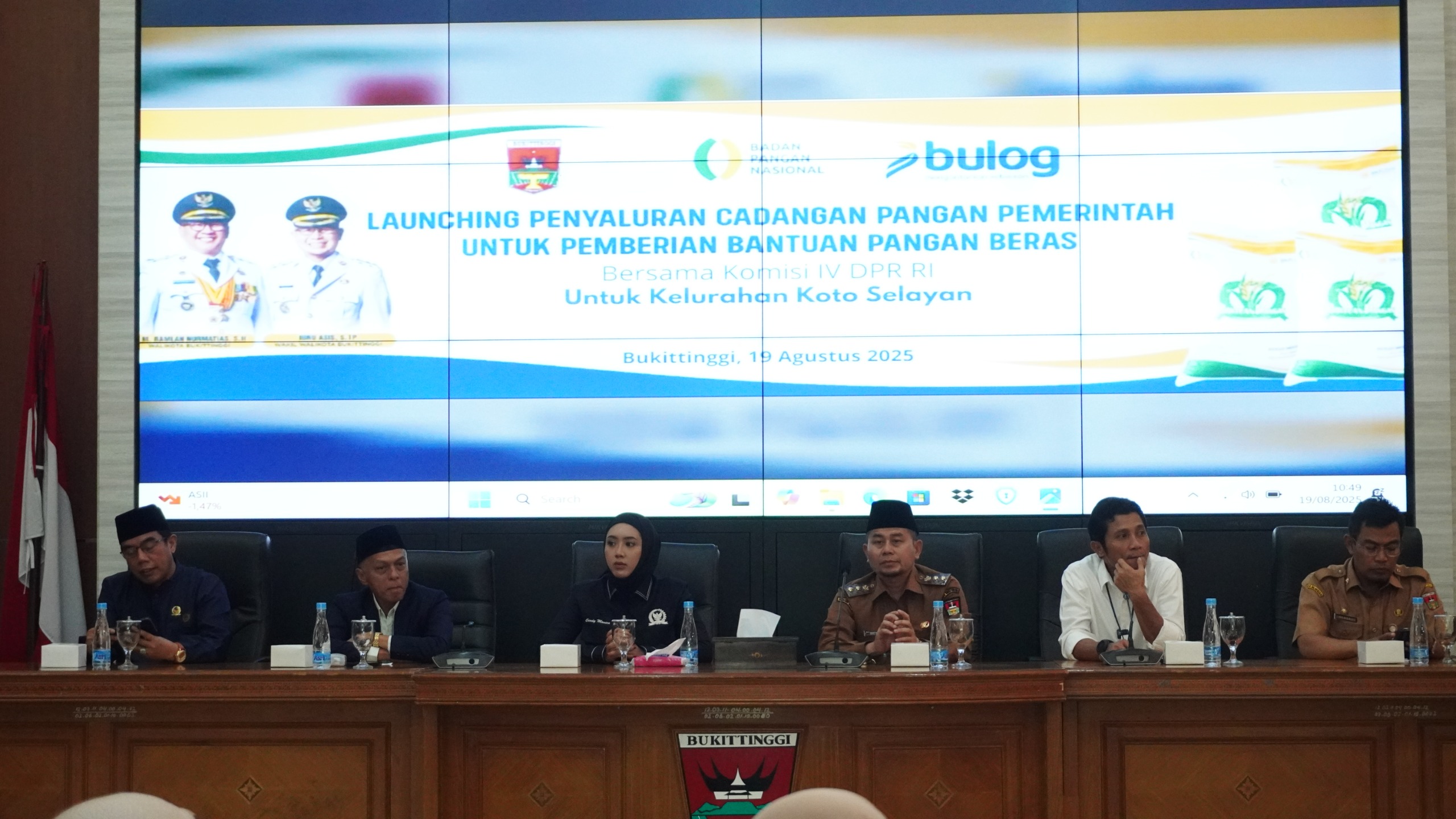 RAGAM — Pemerintah Kota Bukittinggi launching penyaluran Cadangan Pangan Pemerintah (CPP) untuk bantuan beras. Penyaluran yang langsung disaksikan Komisi IV DPR RI dan Anggota DPRD Sumbar ini, berlangsung di Aula Balai Kota Bukittinggi, Selasa, 19 Agustus 2025.