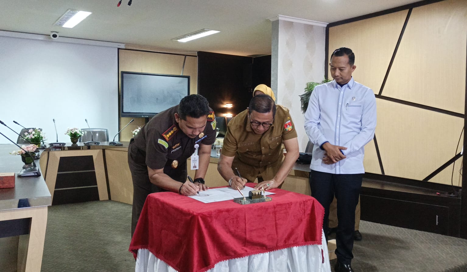 RAGAM – Wali Kota Bukittinggi, Ramlan Nurmatias, tandatangani Nota Kesepahaman (MoU) pelaksanaan pidana kerja sosial bagi pelaku pidana. Penandatanganan dilakukan secara virtual melalui Zoom Meeting dari Bukittinggi Command Center (BCC), Senin, 1 Desember 2025.